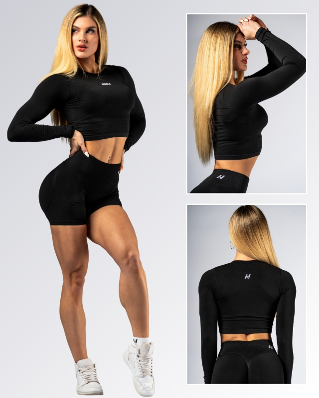 NEBBIA - Hosszú ujjú Crop Top POWER 892 (black)