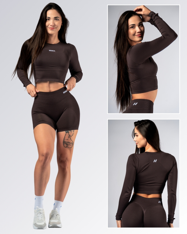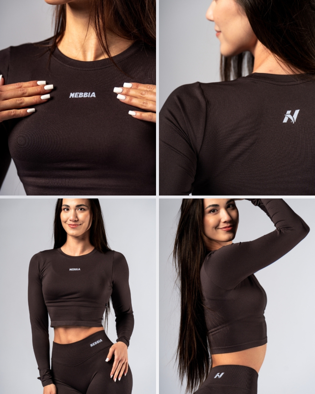 NEBBIA - Hosszú ujjú Crop Top POWER 892 (dark brown)