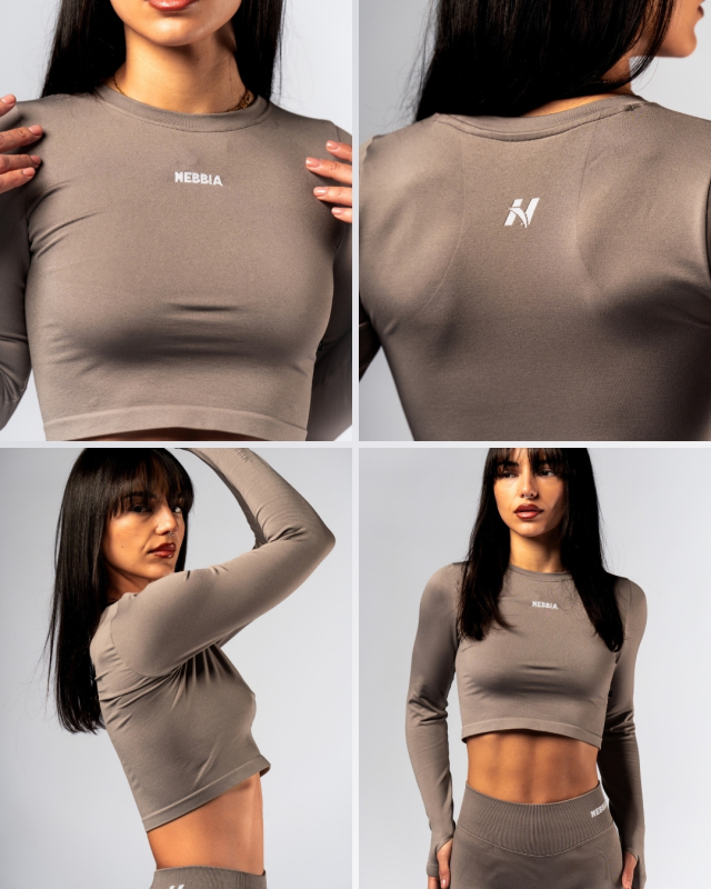 NEBBIA - Hosszú ujjú Crop Top POWER 892 (light brown ash)