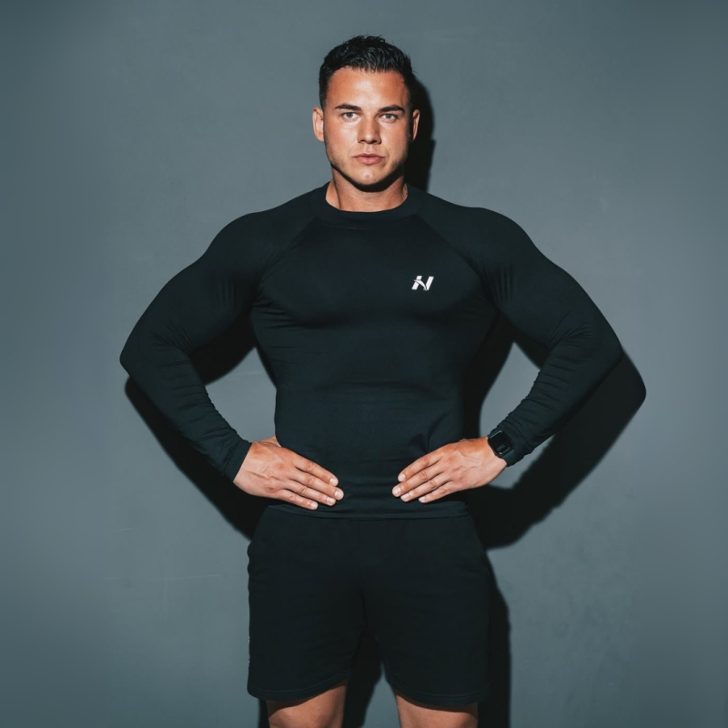 Fekete, hosszú ujjú férfi sport felső a NEBBIA fitness márkától, mellyel az edzés is könnyebben megy!