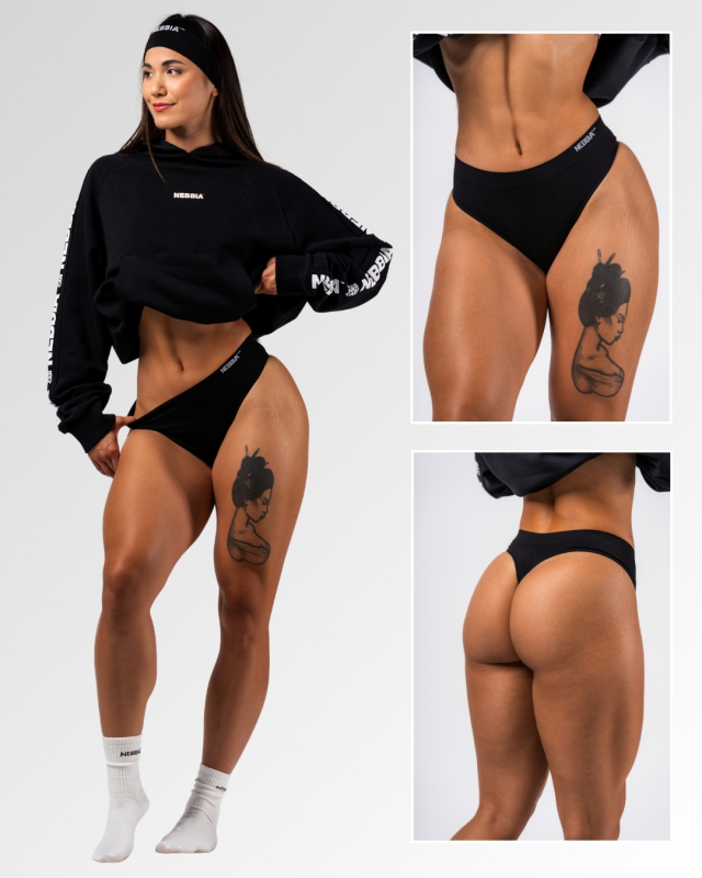 Fekete színű varrásmentes tangabugyi a NEBBIA-tól: a tökéletes láthatatlan kényelem amit minden edzésen megérdemelsz!